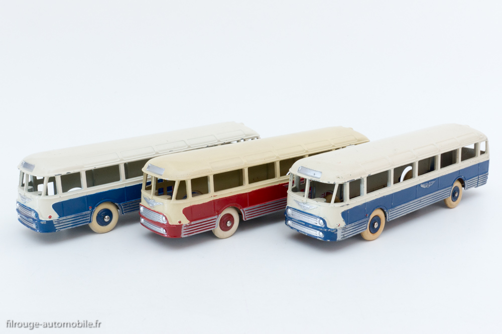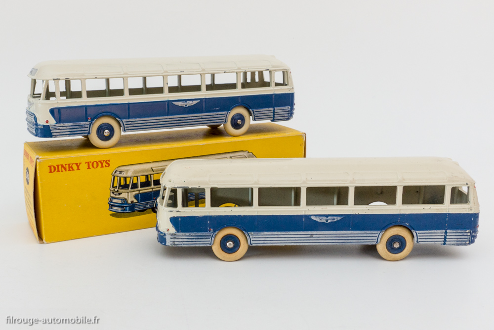 Faisant partie du paysage urbain et routier, les autobus et autocars ont toujours été présents dans les catalogues Dinky Toys. En France, après guerre, c’est le Somua Panhard qui remplit le rôle de l’autobus alors que celui de l’autocar est dédié à l’Isobloc. Mais, en ce qui concerne ce dernier, apparaît très vite la nécessité de proposer un modèle plus moderne. Fort logiquement, Dinky Toys choisit le Chausson AP 52 qui envahit les routes et les villes avec le succès que l’on connait.