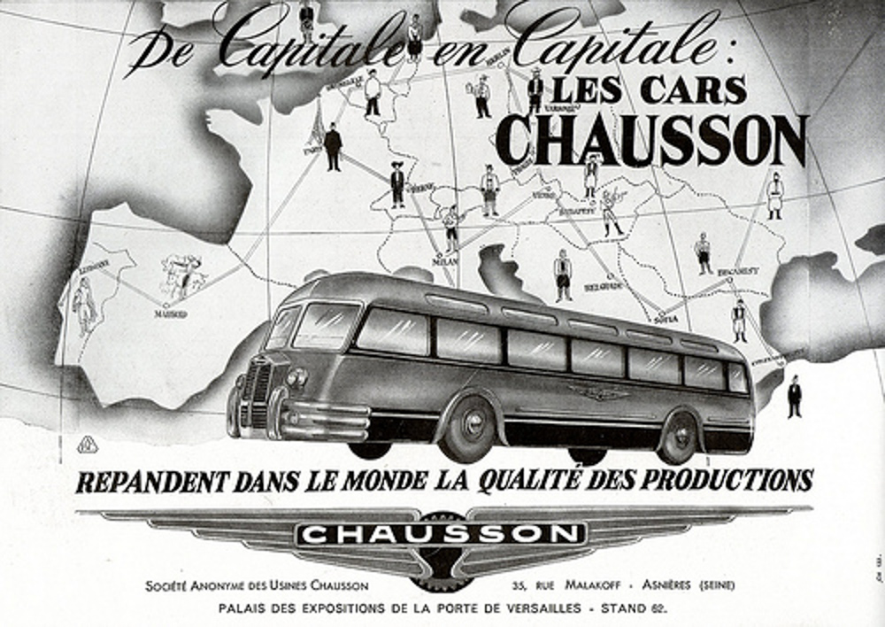 L’autocar connaît son âge d’or et devient le moyen de transport préféré dans une France de l’après guerre en reconstruction. Les gares routières font concurrence aux gares SNCF et l’autocar va dominer jusqu’au début des années 1960, lorsque le marché de la voiture individuelle explose. Parmi les constructeurs de matériel destiné au transport routier collectif, la Société des Usines Chausson va s’imposer.