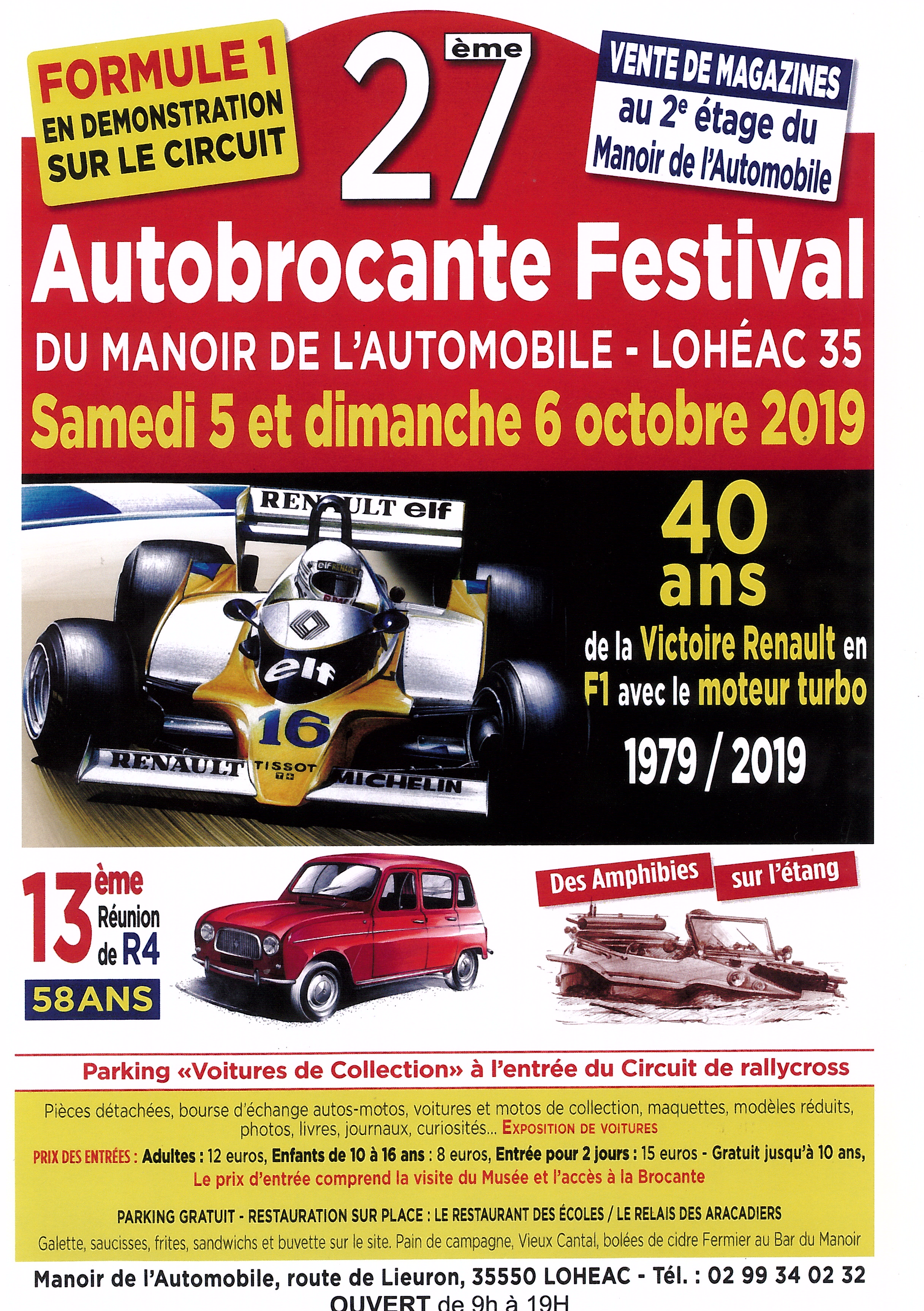 L’Autobrocante Festival de Lohéac est le fief de Renault depuis son origine, la 27ème édition ne l’a pas démenti. Cette année, ce sont les 40 ans de la première victoire d’une F1 Renault Turbo qui était le thème, il était l’occasion de fêter les productions Turbo de route comme de course des années 1980 à 1990 : l’occasion de revoir quelques voitures devenues mythiques.